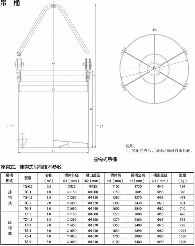 使用范圍及特點(diǎn): 吊桶是立井井筒開(kāi)鑿期間提升矸石、升降人員和材料的主要容器。當(dāng)井筒涌水量小于6m3/h時(shí),還可作排水用,根據(jù)卸矸形式不同吊桶分為掛鉤式吊座鉤式吊桶。 座鉤式,掛鉤式吊桶技術(shù)參數(shù)