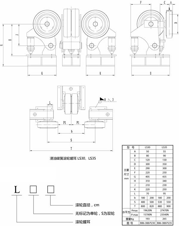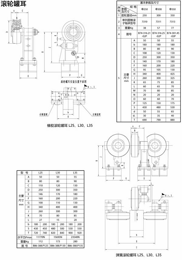 聚胺脂橡膠滾輪罐耳裝置(簡稱滾輪罐耳),是參考多年來各礦井使用滾輪罐耳的形式,廣泛吸取用戶的使用意見改進而成。可根據用戶的使用條件和要求,可采用橡膠緩沖、彈簧緩沖、碟簧緩沖、液壓緩沖、復合緩沖。其使用壽命長、安全可靠性高、維護方便等特點。
